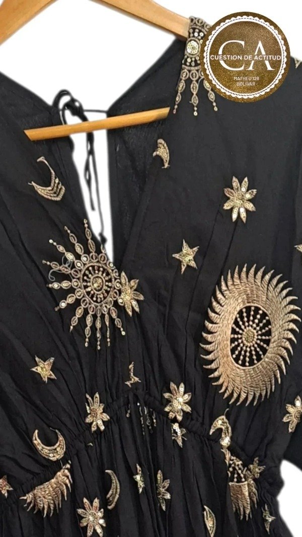 Hermoso Rústico forrado bordado en hilos dorados